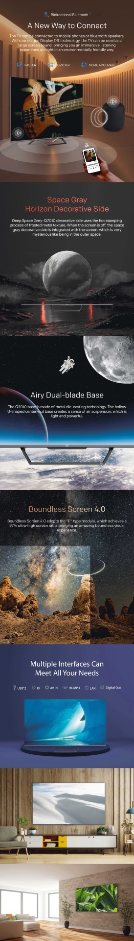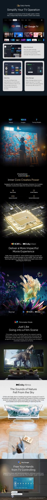 Q7010 uses Eco-QLED, a new generation of QD technology, to improve the color of each frame accurately and significantly, and truly restores 1.07 billion level amazing color.