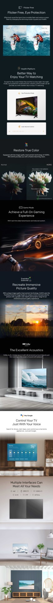 Except for the screen flicker free and the low blue light, the night mode, eye-protection mode and auto-volume control mode can all provide you with a better way to enjoy TV watching.