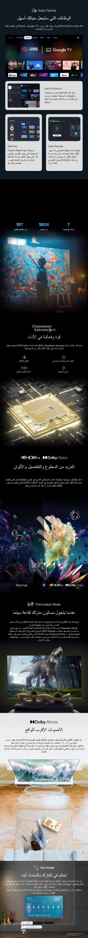 بالإضافة إلى وظائف نظام Google TV، يوفر جهاز تلفاز إريس Q7010 باقة عائلية فريدة لتلبية المزيد من الاحتياجات