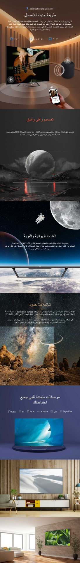 بصرف النظرعن تقنية الشاشة الخالية من الوميض وانخفاض مستوى الضوء الأزرق المنبعث من لوحة Q7010، يتمتع هذا الجهاز بالعديد من المزايا الأخرى التي ستغير تمامًا الطريقة التي تشاهد بها التلفاز، مثل النمط الليلي ونمط حماية العين وكذا التحكم التلقائي في حدة الصوت