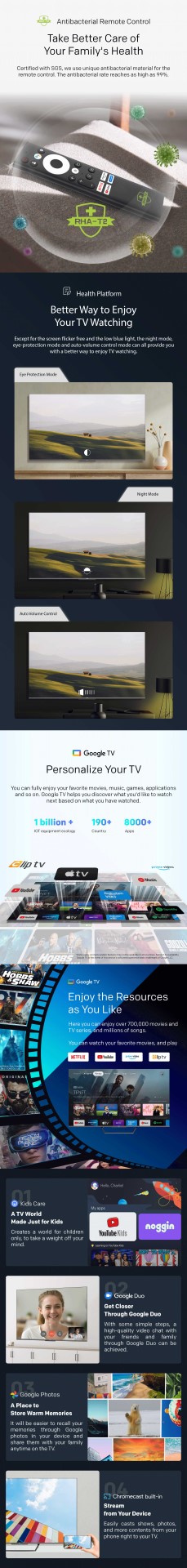 Certified with SGS, we use unique antibacterial material for the remote control. The antibacterial rate reaches as high as 99%.
